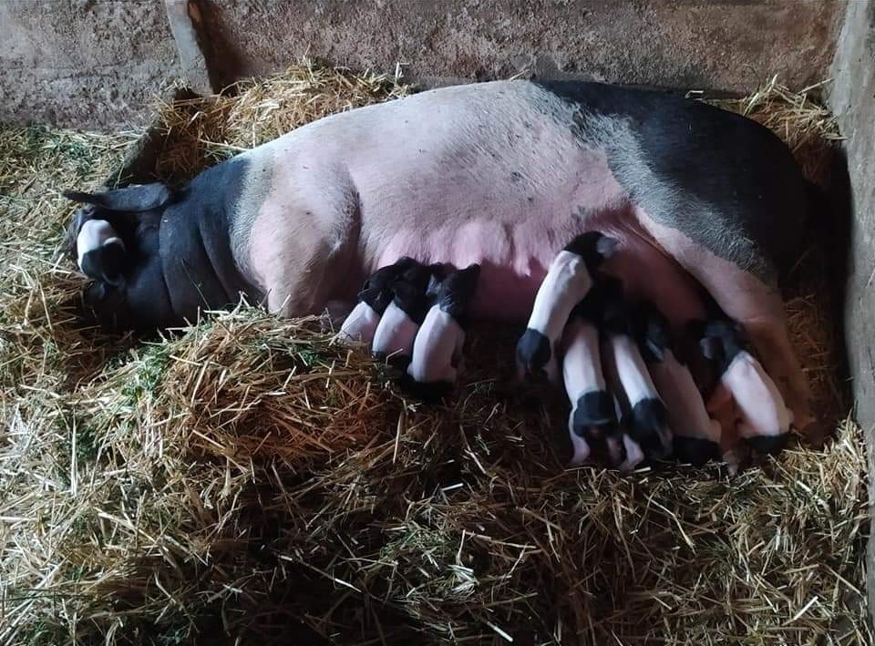 Unsere Schweine halten wir auf Stroh. So kann die Sau ihr natürliches Nestbauverhalten ausleben.