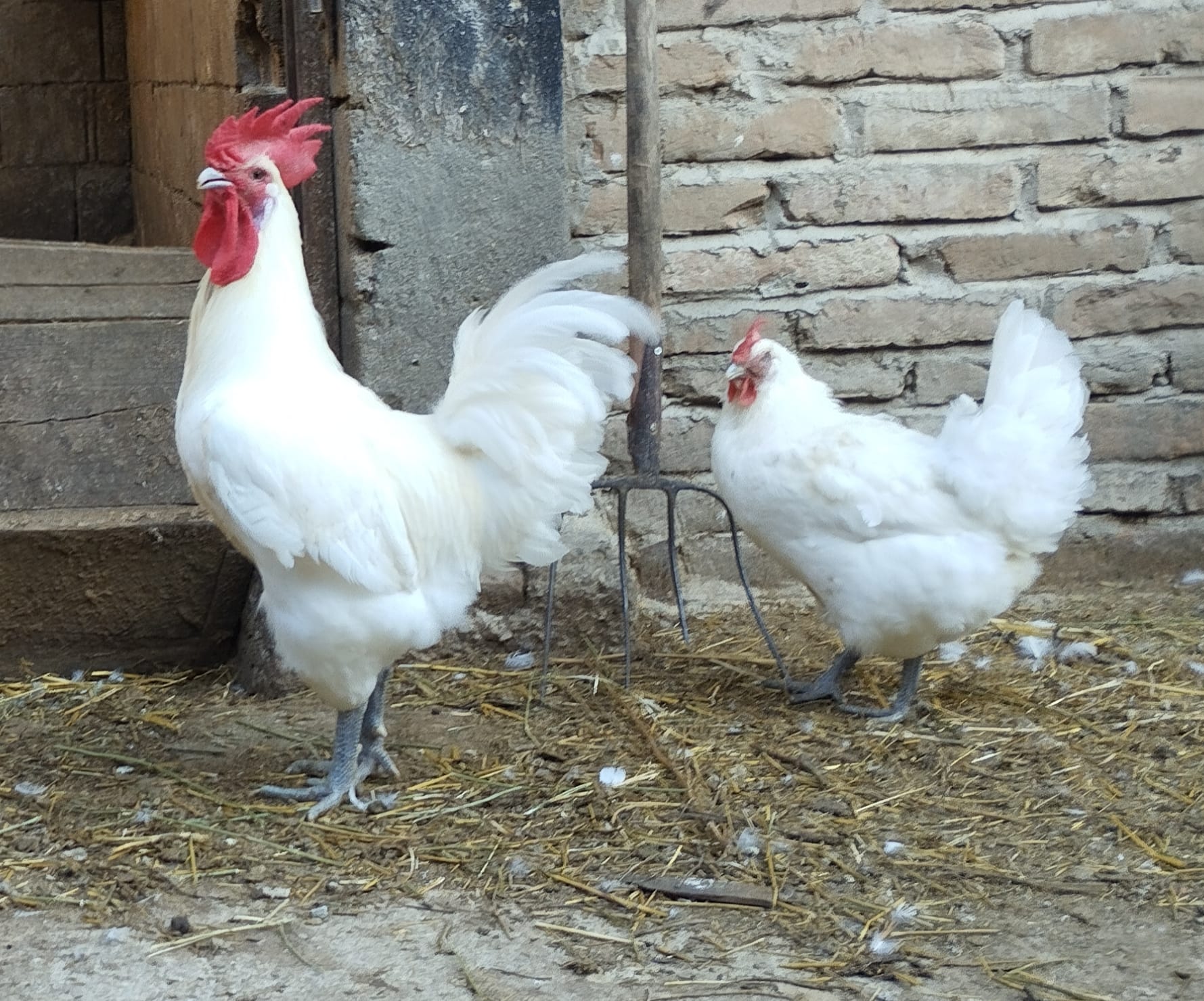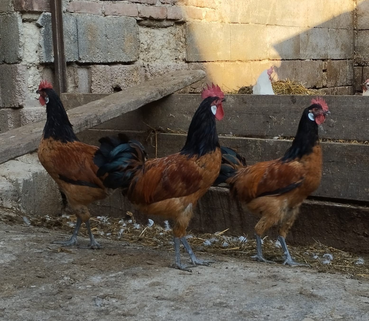 In unserer bunten Hühnerschar tummeln sich immer auch ein paar Hähne. Sie bewachen ihre Hennen und sorgen für Nachwuchs.