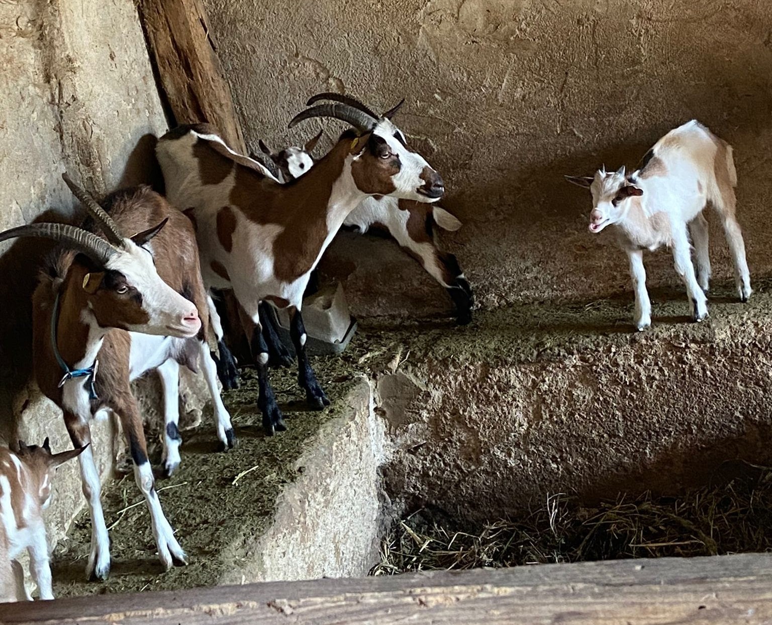 Insgesamt leben zurzeit 15 Rinder, 13 Schafe, 6 Ziegen, 3 Schweine, 25 Hühner, 5 Enten, 2 Gänse, 2 Hunde und 3 Katzen auf dem 11er Hof.